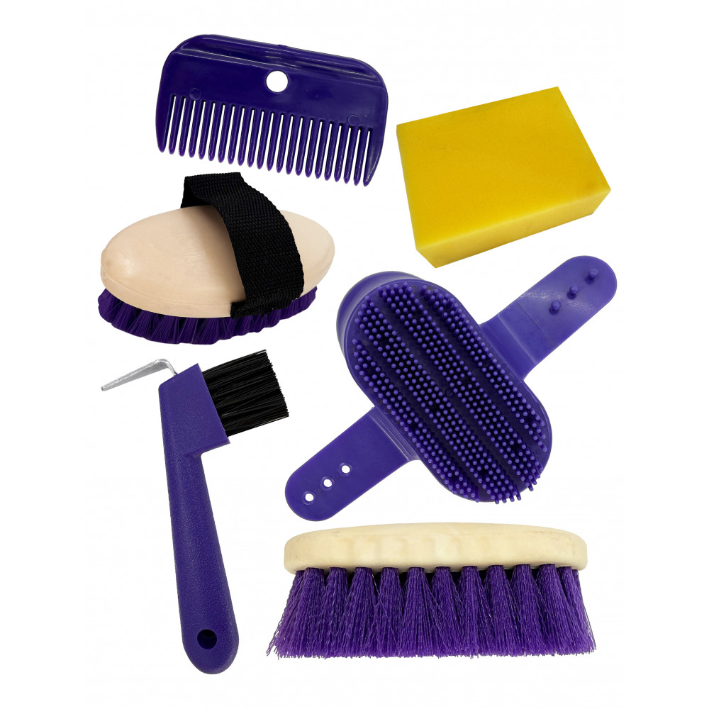 The ultimate grooming kit for little horse lovers! This handy bag is packed with everything your young groomer needs-perfectly sized for small hands. Includes a sponge, body brush, dandy brush, curry comb, hoof pick with brush, and mane comb.