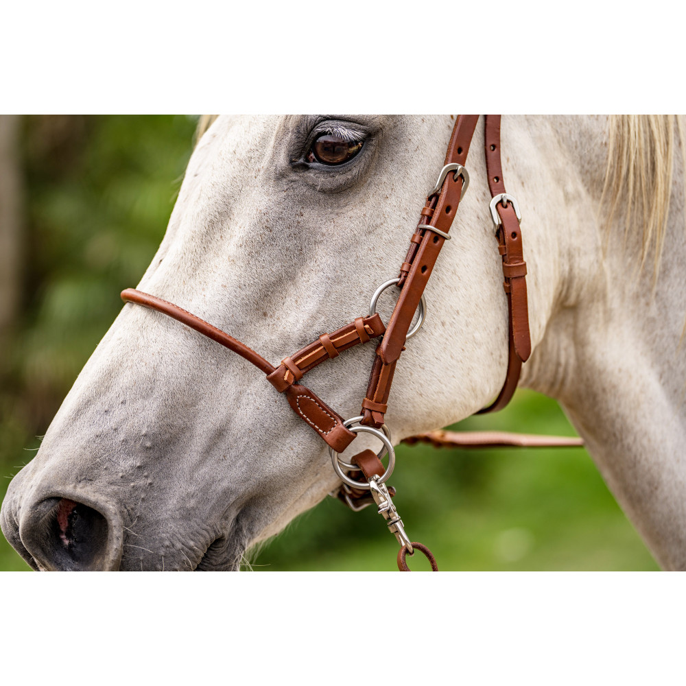 Also known as a sidepull, this western bitless bridle offers communication without placing pressure on the horse’s mouth. Ideal for sensitive horses, young horses in training, or riders who prefer a softer approach.
