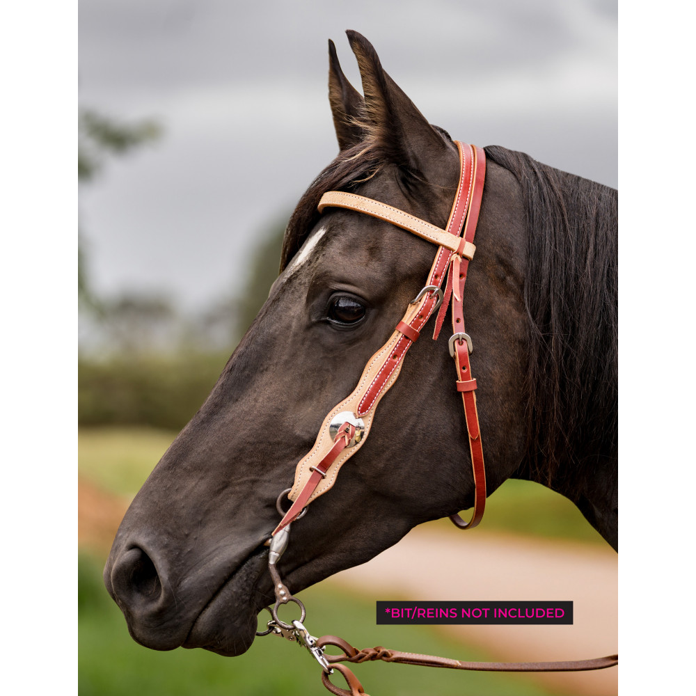 Antyhign but plain, built tough with true western character, this working bridle features roughout leather for added durability, paired with a bold red leather overlay for a sharp contrast.