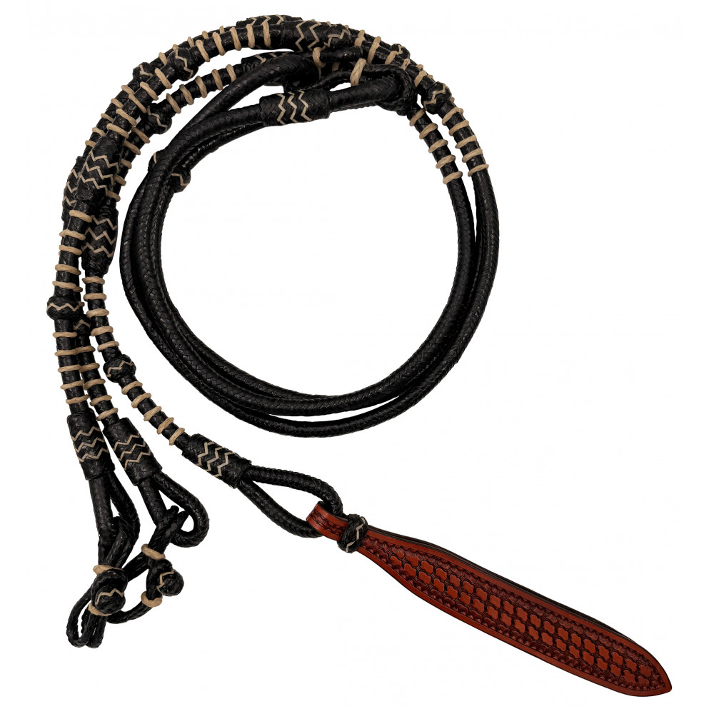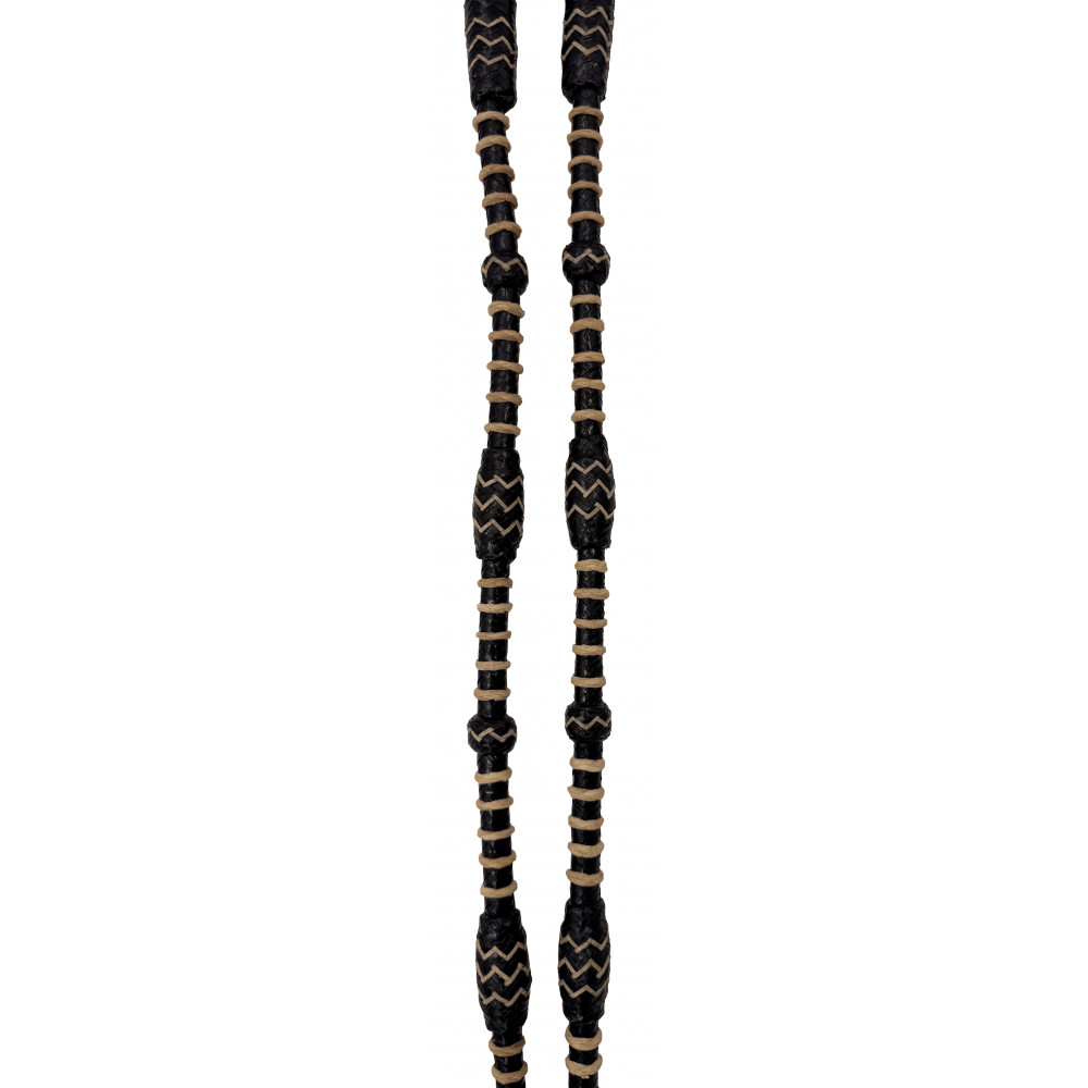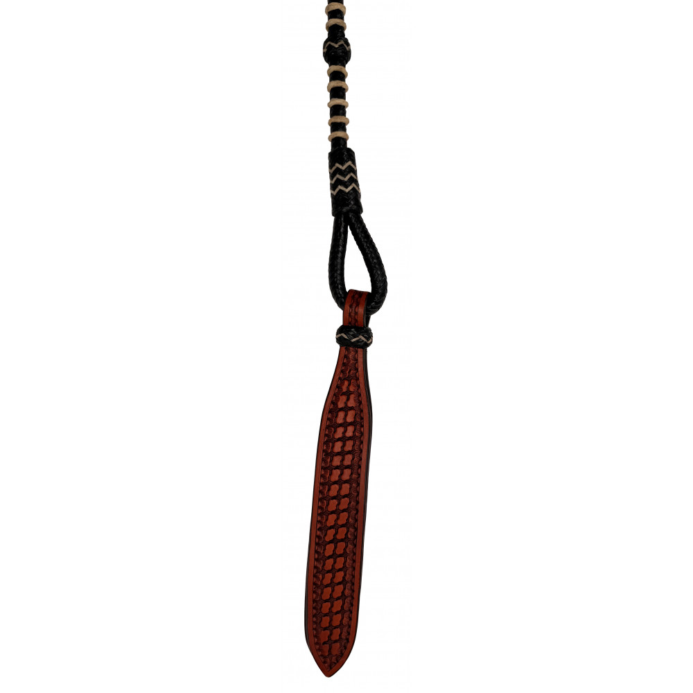 Featuring a braided rawhide body with woven detailing for added grip and control, these reins offer a refined, structured feel in the hand. The weighted romal tail provides natural balance, encouraging quiet, steady hands.