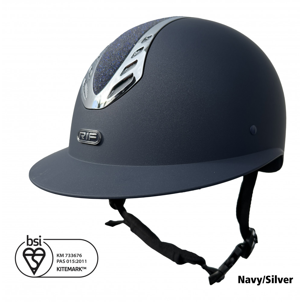 A statement in safety, performance, and modern equestrian style. RIF helmets are CE-VG1 approved and BSI Kitemarked, making them yellow-tag compliant for competition.
