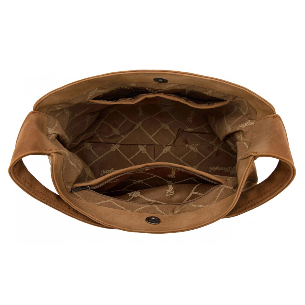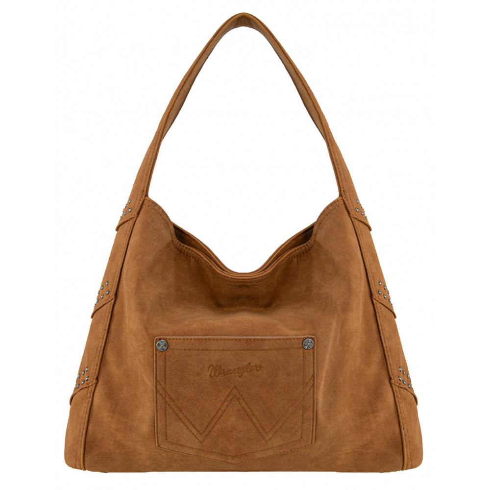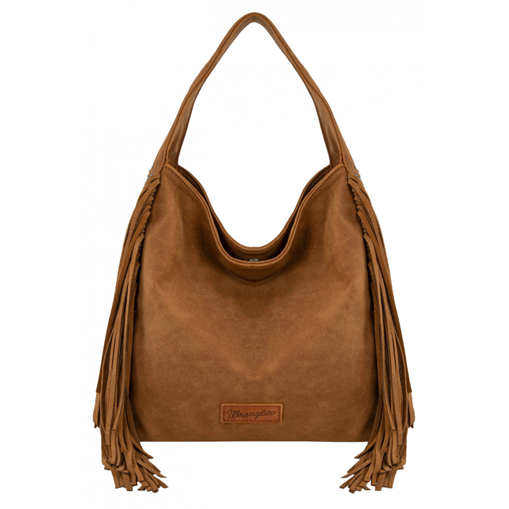 Features genuine leather suede fringing with stylish side stud pattern detailing. Designed with a top magnetic button closure and carry handle for easy use. Includes a back feature pocket, internal zip pocket and slip pocket to keep your essentials organised. Finished with the iconic Wrangler logo badge.