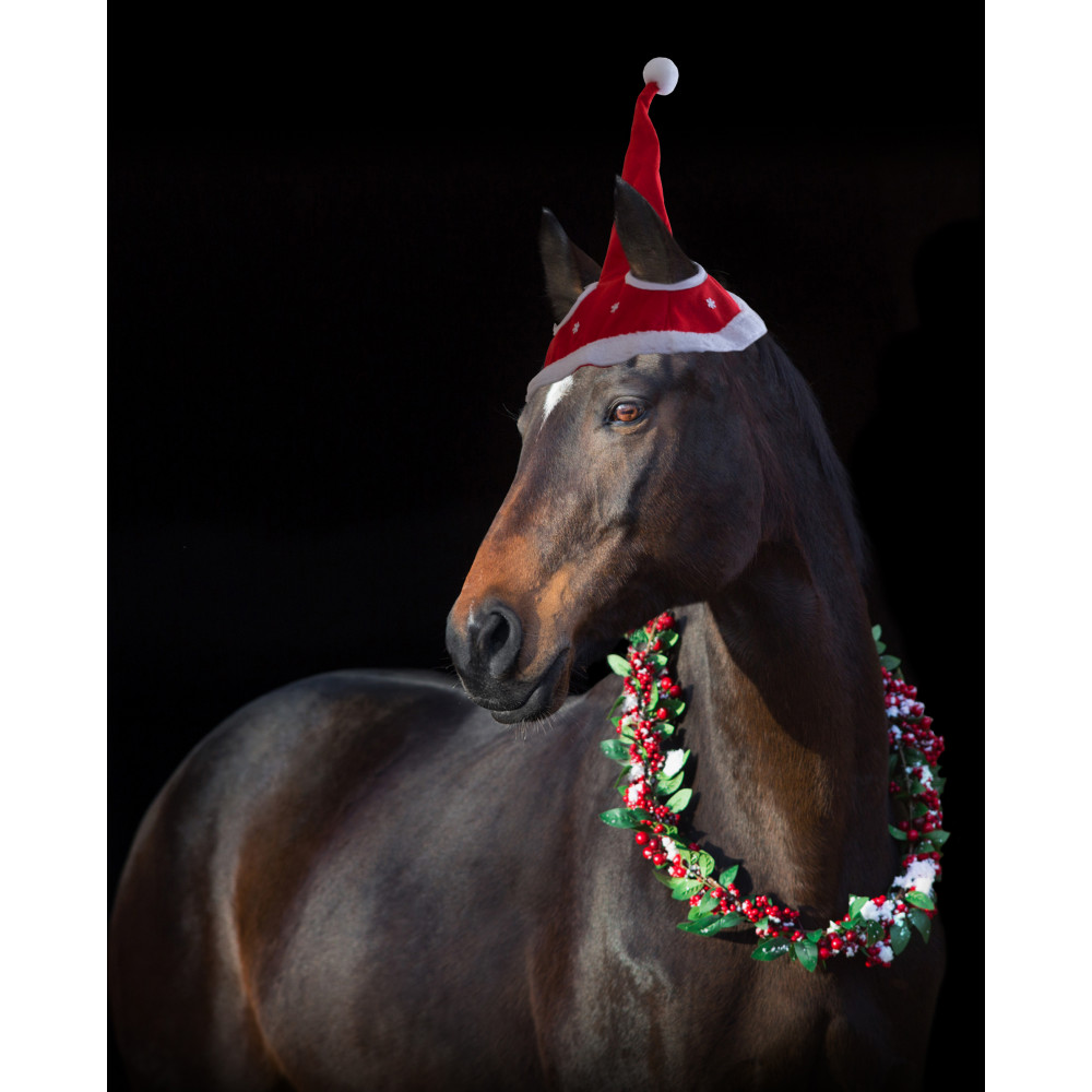 This Santa Christmas Hat is a great festive accessory. Featuring 2 ear holes, and star detailing. Ready for the Christmas Pony Club rallies, or a family photo. Matches our wide range of Christmas accessories.