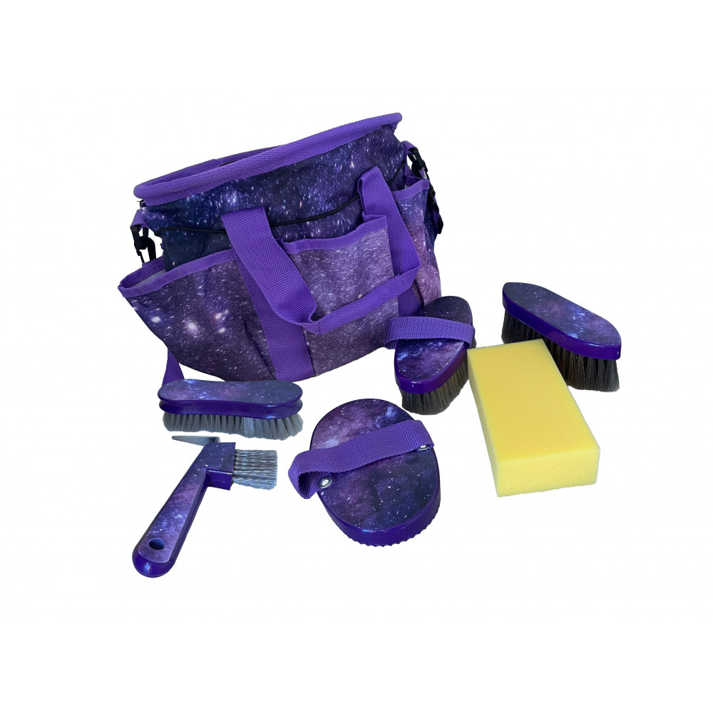 Galaxy printed 6 piece complete horse grooming kit with matching grooming bag. Purple.
