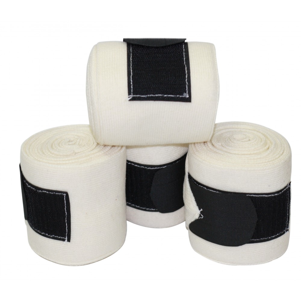 Soft knitted bandages with wide Velcro closure.