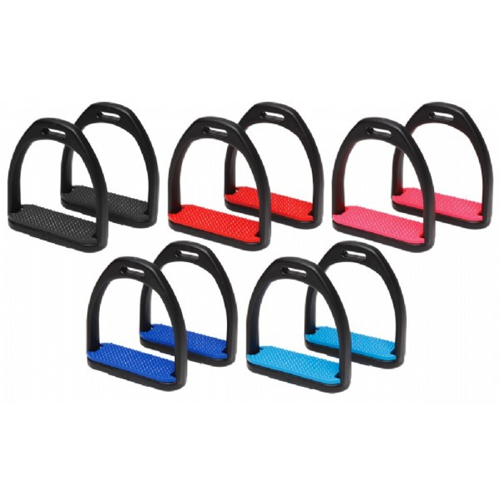 This strong but lightweight stirrup is made from super tough resins, produce by DuPont du Nemours, who guarantee its properties. Rubber treads come already fitted. Adults 11.5cm - Childs 9.5cm