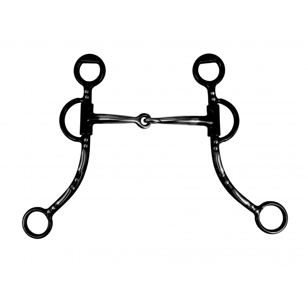 This Western snaffle bit is made of carbon steel.