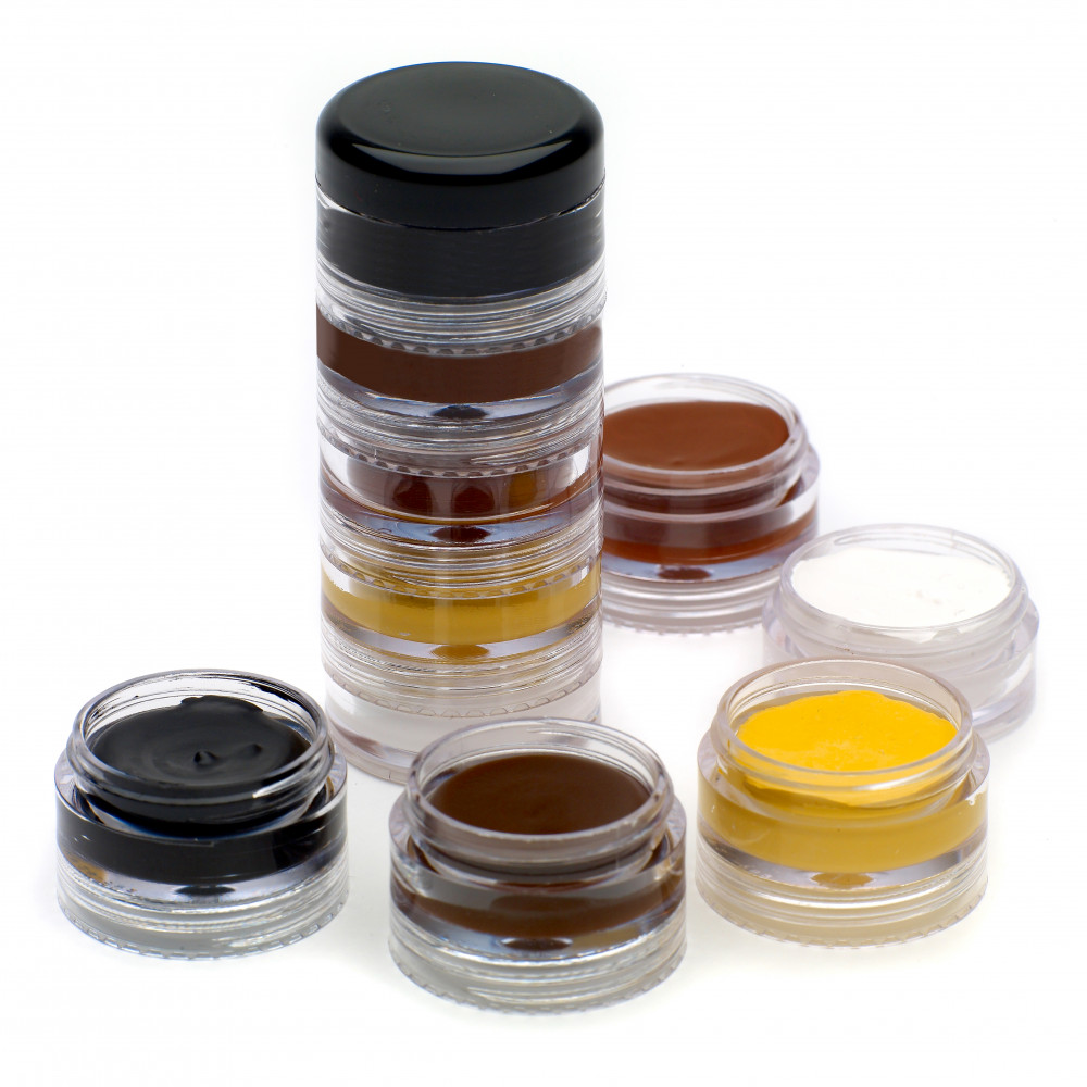 Stackable set of 5. Contains small amounts of each colour of the Make Up Matt range - black, chestnutt, white, dark brown, palomino