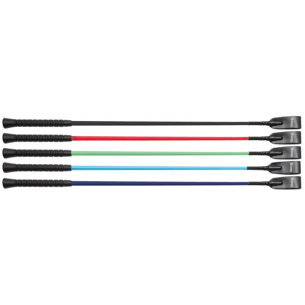 Threaded stem whip featuring an easy to hold rubber grip handle and leather keeper.