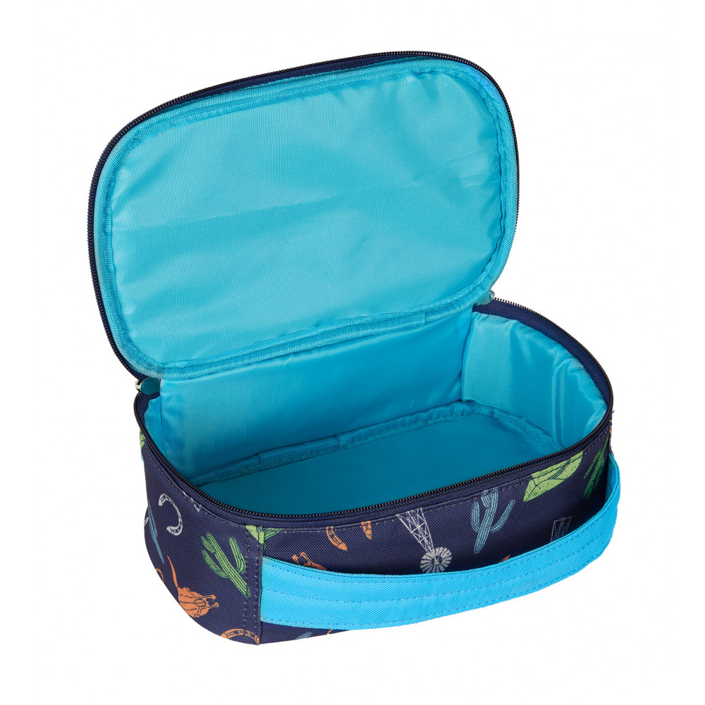 Cute lunch bag with top handle and zip closure. 24cm x 14cm x 9cm. 100% Polyester.